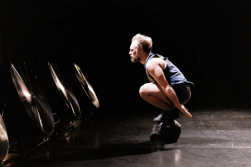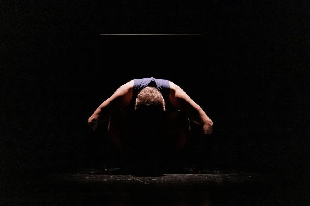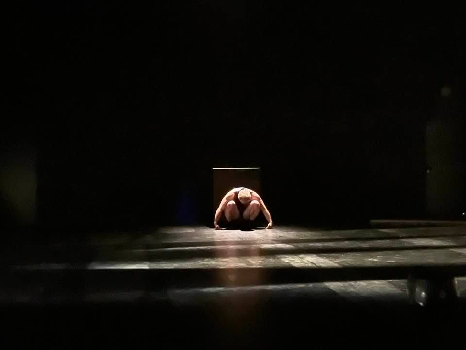 Un homme tout en tensions et extensions se présente replié tel un animal de nuit en hibernation, tel un oiseau, une chauve-souris. Cet amour du geste où les métaphores s’entremêlent dans chaque pas impressionne. On est entre ombres et lumières (plutôt légères et blanches), entre jeu circulaire de mouvements de déploiement du haut du corps et mouvement sur un axe, répétitif, un peu angoissant. Un mouvement tantôt minimal, tantôt nourri, presque sauvage, en accélération perpétuelle comme une prière en balancier devant un mur des lamentations. On est dans la construction phasée, dans la maîtrise d’éléments physiques avant le grand départ pour une course qu’on imagine plutôt longue et périlleuse. On sent une tension, on la sentira tout du long avant la récompense finale, en apothéose, sur une ligne de crête qui fait basculer le danseur dans un état d’euphorie sur la ligne droite d’arrivée, un drapeau à damier imaginaire venant refermer une escapade en « monoplace invisible » devant un public de Nuithonie en pamoison. On pense à Jo Siffert et ses excès, on pense à Ayrton Senna et sa malchance, on pense aux planches du décor qui brûlent comme le ruban du circuit de Bahraïn.