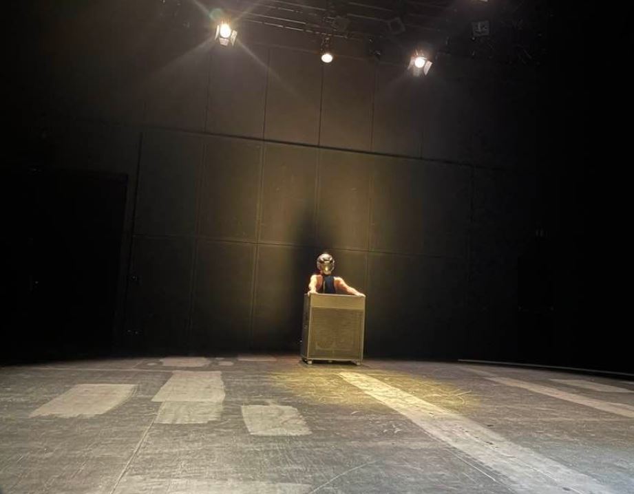 Le spectacle passe d’un tableau minimal où toutes les boucles chorégraphiques se développent dans un espace toujours très circonscrit, comme si notre héros était enserré dans l’enclos d’un cockpit d’avion de chasse. Le jeu de mise en scène permet de raccrocher le spectateur à la culture pop. On y voit le casque d’un pilote de course posé sur le haut du torse contorsionné du danseur, on pense au chevalier sans tête bien sûr. Puis on découvre un casque posé en sens inverse, boombox frétillant, sons EDM légers en sortant par bribes subtiles… Les éléments du décor font apparaître alors l’image d’une moitié de Daft Punk, l’effet légèrement comique est savoureux quoique très discret. La présence du casque est centrale au spectacle. L’accessoire permet de signifier la grandiloquence et la récompense du podium, une séance de peinture à la bombe aérosol couleur or venant saturer la fin du show avec références à l’industrie (du spectacle?) dans ce qu’elle a de plus superficiel. Les spectateurs des premiers rangs participent olfactivement à la séance de couronnement.