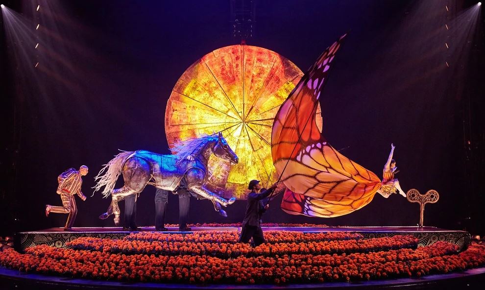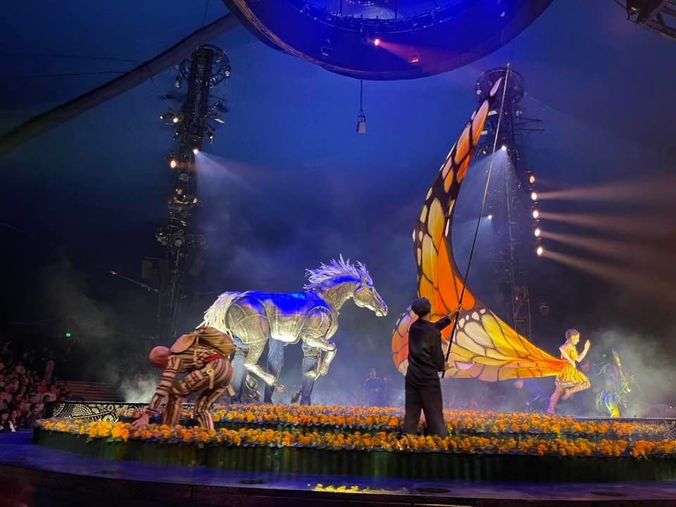 La troupe québécoise débarque en costumes flamboyants et déploie ses ailes pour nous faire reconnecter avec un art qui avait trop longtemps été mis au placard pendant les périodes de confinement : un cirque joyeux, soyeux, ambitieux et un show aux antipodes des cirques classiques. Au Cirque du Soleil, on aime la démesure, on aime aussi les animaux quand ils ne sont pas domptés, juste fantasmés. Tonnerre d’aplaudissements pour cette posture animaliste.