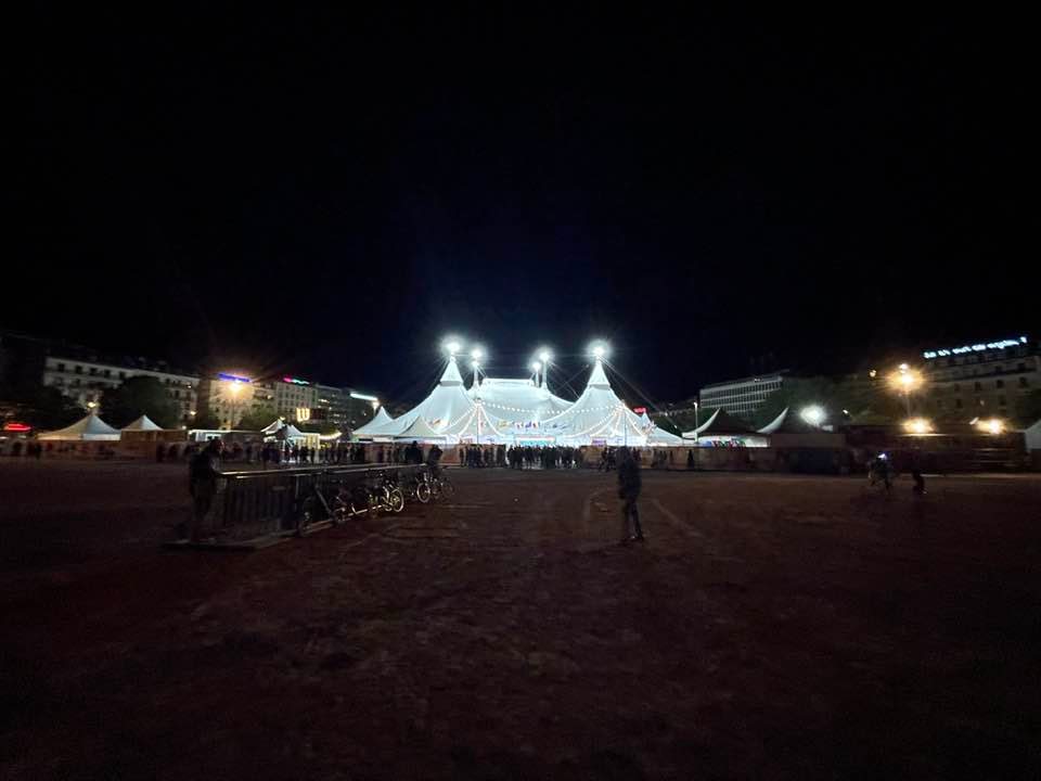 Ce village magique qui éblouit la plaine de Plainpalais jusque tard dans la nuit s’est montée en un temps record. La troupe québécoise « world famous », et pas qu’à Las Vegas et Genève, est un cadeau royal en ce temps de guerre en Europe de l’Est. Point de jubilée de « Reine britannique » icite, quoique les Canadiens ont bien conquis le Royal Albert Hall il y a quelques mois… mais une jubilation nourrie par les performances de l’équilibriste en costume de lutteur-super-héros. Il y a aussi un talent au Cirque du Soleil pour pousser les figures féminines dans un songe au pouvoir de séduction très fort. On caresse cette délicieuse image de ces danseuses enroulées dans leur cerceau, ses acrobates suspendues à des cordes détrempées, des sauteurs d’arceaux qui se succèdent dans des tricks pas simples. On en reste bouche bée. Malgré les petites erreurs, on accepte les hommes et femmes du Cirque du Soleil comme des êtres qui vont loin, ce ne sont pas des machines.
