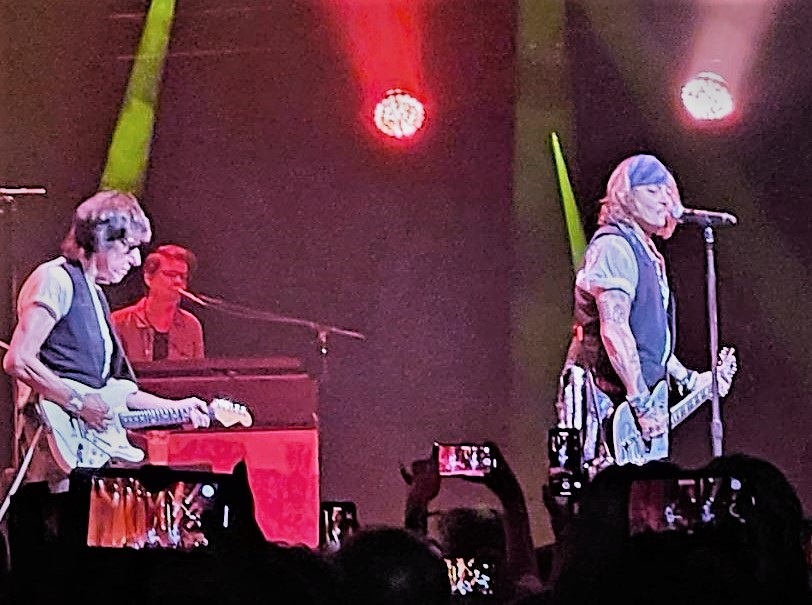L’album de Beck s’appelle « 18 » parce qu’ils ont l’impression d’être de jeunes hommes. Leur album est une ode à leurs maîtres du rock and roll. Après une séquence d’une quarantaine de minutes où l’instrumentiste Jeff Beck, renforcé par une section rythmique de classe supérieure, nous gratifie de plusieurs de ses soli d’anthologie, en rupture avec le cliché blues-rock bidon et bourratif de ces « gratteux » mondiaux trop contents d’eux, on sent la foule en demande d’un petit supplément. On comprend alors que Depp se fait attendre par les plus jeunes spectateurs. Mais Beck laisse monter la sauce, joue avec les ambiances, tantôt futuristes (merci au clavier et choriste qui fait office de back-up multi-facettes dans ce concert aux allures de workshop pour amateurs de prouesses « stratocasterophéériques » sonnant simples). Mais voilà le Pirate – déjà vu à Montreux avec Alice Cooper et Joe Perry en 2018 – avec sa voix qui n’est pas sans nous faire penser à celle d’Axl Rose s’il avait remplacé la coke par la morphine. L’antidouleur n’aide pas le Johnny Kid à pousser fort. Il est un piètre performer mais il y met du cœur, il n’a rien composé car il s’attache surtout à faire briller les morceaux de « 18 » composés par d’autres. On notera un « Venus in Furs » du Velvet Underground qui glisse aux oreilles comme si Lou Reed avait fait un come-back sur terre sur la Riviera vaudoise pour donner un petit coup de main. Encore une fois, tout le mérite revient au back vocalist de Johnny Depp.