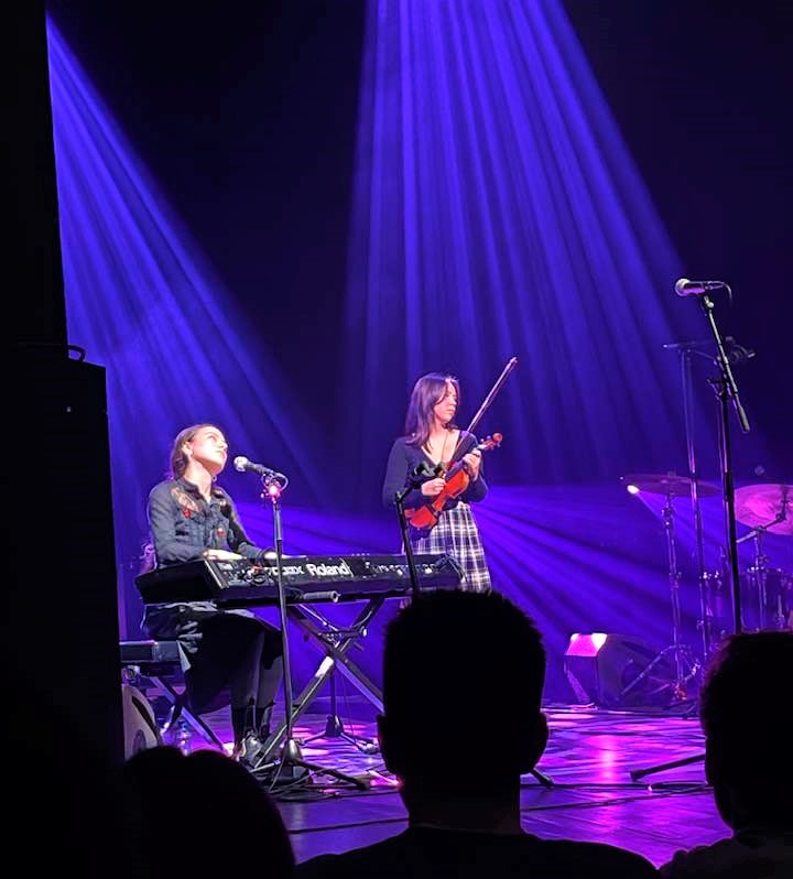 Une souplesse technique que BC, NR aime aussi en faisant «parler» violon, piano et saxo comme des éléments d’une chorale, avec en complément ce chant théâtral à la façon d’un Neil Hannon de Divine Comedy posé avec classe par le « crooner » de circonstance Lewis Evans. Et quand l’ensemble se met en branle après quelques séquences de soli d’un ou deux instrumentistes sous l’éclat d’une poursuite intense, des riffs plus rock n’roll dégringolent pour nous rappeler les envolées puissantes de grands ensembles canadiens comme Arcade Fire ou Broken Social Scene. La chanteuse et bassiste Tyler Hyde prend les commandes sur « I Won’t Always Love You », rythmant de son bras les parties musicales, soulignant ces quelques motifs musicaux par des paroles de la chanson, une voix un peu traînante, légèrement enrouée, « j’ai besoin de votre soutien, je suis malade » dit-elle mi-désolée, mi-frustrée. Elle est pardonnée, la formule piano-saxo-violon compensera largement les relatives errances vocales. Beauté du mélange, harmonie et complémentarité des musiciens dans une alchimie impressionnante. Guitares à la Jeff Buckley, on pense aux arpèges de Lilac Wine, aux élans chromatiques de Last Goodbye, Buckley les a-t-il marqués? On ne sait pas mais ce groupe sait utiliser les vibrations des accords tombants, les silences, les nuances autorisant des sons de flûte traversière à s’inviter au bal dans des écarts originaux, comme dans des concerts de rock progressif à l’époque du Genesis gabriélien et des premiers assauts de Pink Floyd. Le public jeune qui peuple le front de scène, majoritairement british interagit avec « sa » bande, comme Genève est une cité (aussi) anglaise dans son expression nocturne, on n’est pas surpros. A un moment de la soirée, on se serait presque cru dans une salle d’Albion… La voix de May Kershaw reprend le lead pour un piano solo, à peine enrichi de doses doucereuses de violon délivrées au compte-goutte par Nina Lim. La magie opère. Le groupe est par terre pendant la performance du duo. Retour au rock, avec ces beats enroulés se faisant plus puissants, le batteur Charlie Wayne s’immisce dans un jeu de guitare-basse aux assemblages complexes. Mention spéciale à Lewis Evans, ce grand échalas aux manières timides, alternant flûte et saxe, voix et mini-prises de paroles pour donner des nouvelles de son bulletin de santé (visiblement le groupe n’a pas échappé aux virus de saison) et pour blaguer avec les « pals » des premiers rangs, acquis à la cause du groupe et plutôt bons pour soutenir BC, NR dans les interstices.