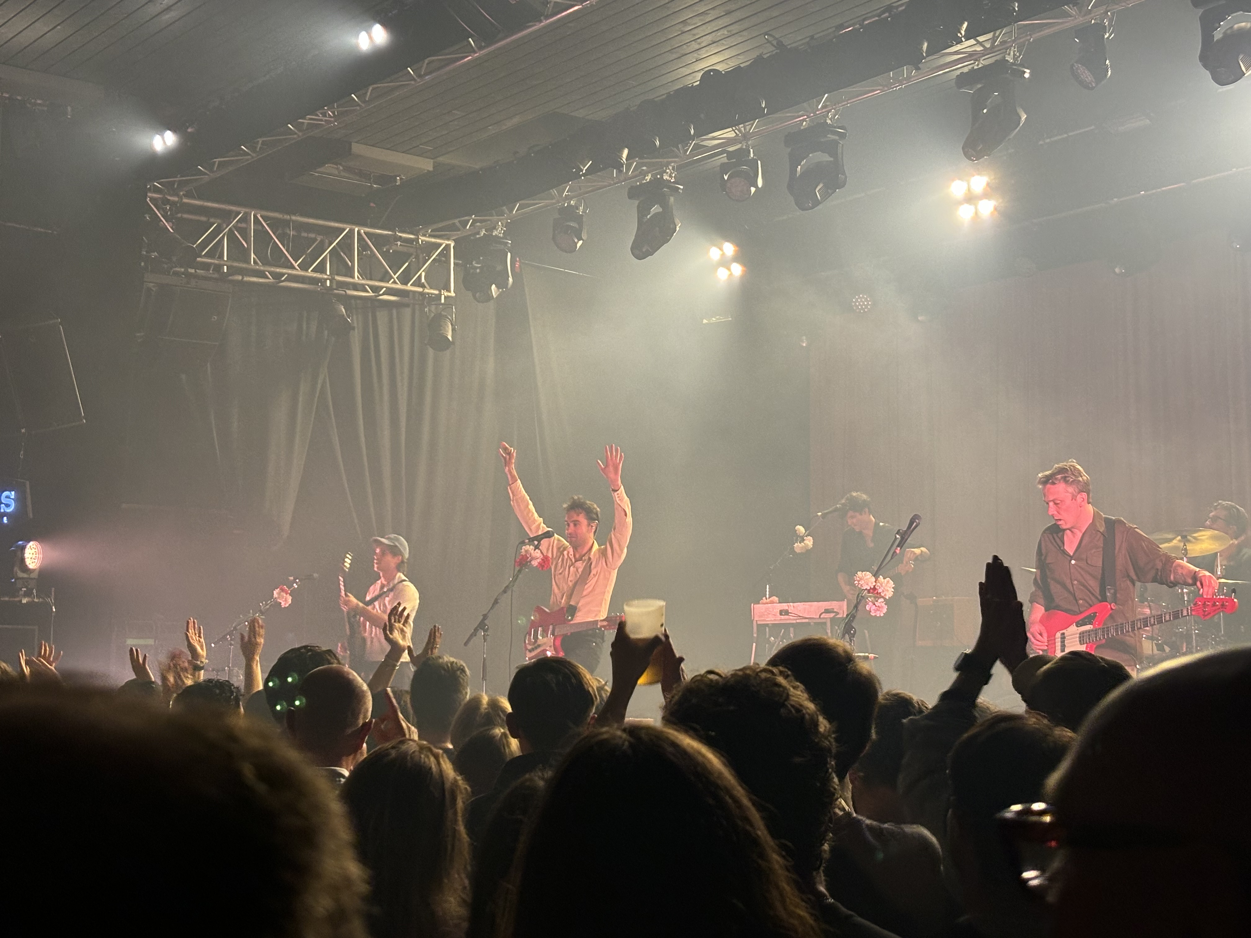 With Live and Let Die playing as if summoned by fate, Justin Hayward-Young and his band stroll onto the stage. His slightly unbuttoned white shirt exudes charisma, and the audience is immediately hooked. The set is a visual ode to Morrissey’s Hand in Glove era: faux carnations spill across the stage like confetti, not just stage right but everywhere. The opening track, with its unmistakably Smiths-inspired vibe, sets the tone. The audience is already grinning, thrilled to be part of this indie-pop prom.