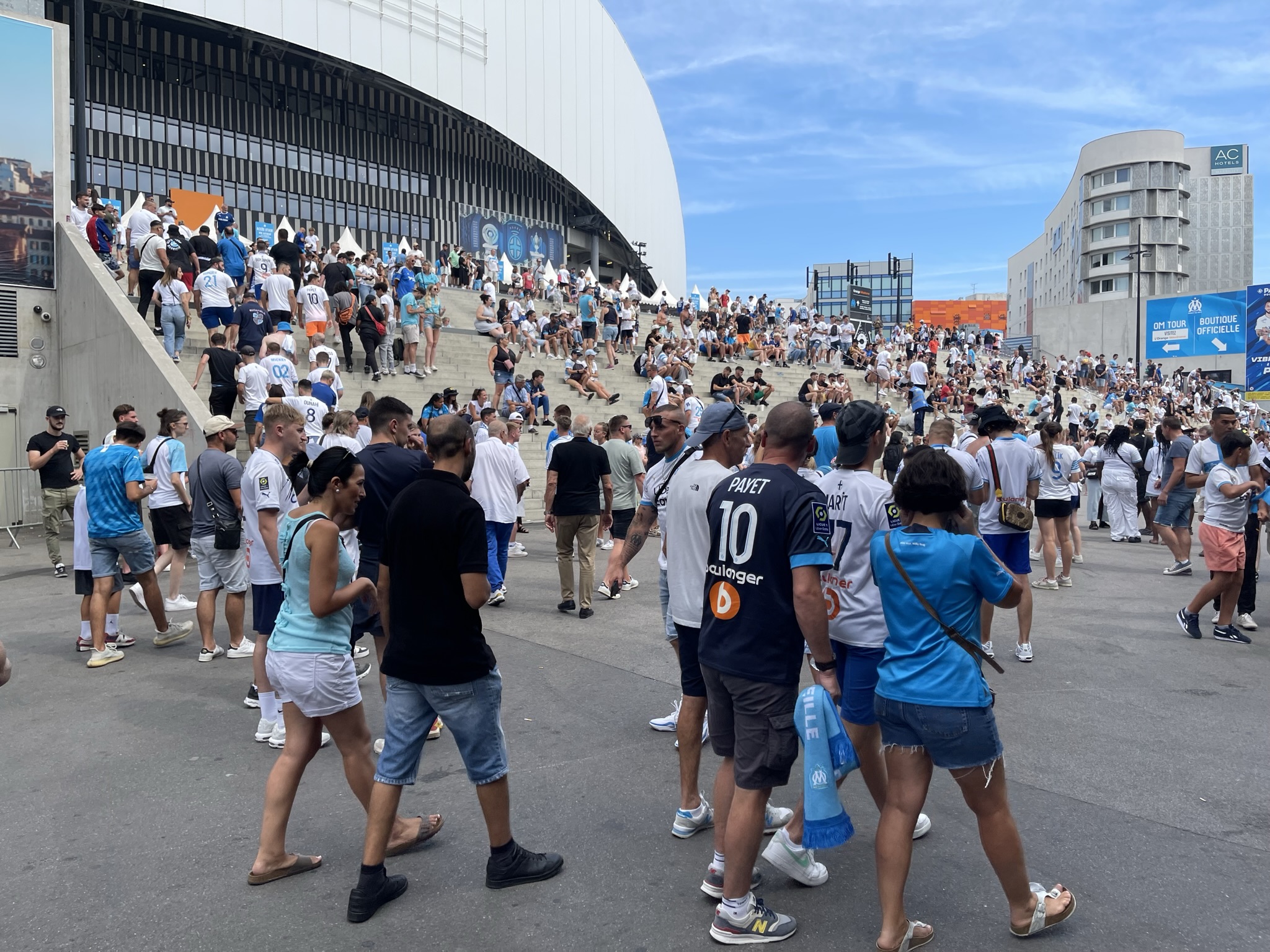 Le Stade Vélodrome, le 12 août 2023, il est 16h50, je pénètre dans la tribune du presse pour la première fois, j’ai salué les anciens collègues du service des sports de Radio France, Jean-Pierre Blimo et Bruno Blanzat, deux amateurs de foot ultimes et généreux de leurs infos (merci Bruno pour toute la transmission), le premier étant un ancien collègue de virée dans les stades de Ligue 2 (Duvauchelle à Créteil), le second un “jeune ancien” du Multiplex d’Inter présent sur le réseau de France Bleu au milieu des années 2000 pour suivre Auxerre puis Marseille, le club de sa région.