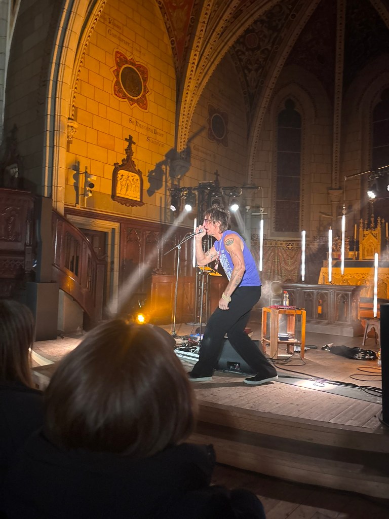 Joseph Arthur enters the church, clad in a jacket of his own design, tall and slightly awkward, his colorful guitar slung across his back. He waits patiently to be introduced by the Antigel team. The concert begins in the Catholic church of Bernex with a burst of energy, but his guitar struggles to keep up. Due to a technical problem, he is forced to improvise a tribute – that he planned – to a friend he once knew in New York, Lou Reed. The unamplified magic is there—Joseph is a musician. The acoustics of the church work in his favor. The wires are reconnected, and the amplified version of the show resumes, but there’s a sense that the emphasis on the words and chords is a bit too heavy-handed.