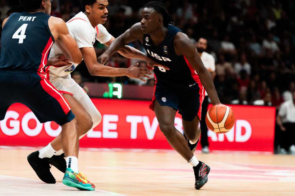 Team USA U19 n’a pas encore la maestria de ses aînés. Dybantsa n’a pas encore la puissance brute de LeBron ni la dextérité ciselée de KD — mais ça vient. Probable futur numéro 1 de la Draft NBA 2026, il ne fait pas dans la dentelle : il fonce dans la peinture à l’énergie, sort les pinceaux pour finir ses drives en finger roll, en reverse impeccables, parfois même en arabesques à la Kobe. Et dire que l’arrière de Brigham Young University n’a pas encore joué une minute en pro… Une démonstration de facilité, enrichie d’un sens du spectacle que ne renieraient ni Michael Jordan, ni Tyrese Haliburton (ni Anthony Edwards, selon les préférences).
