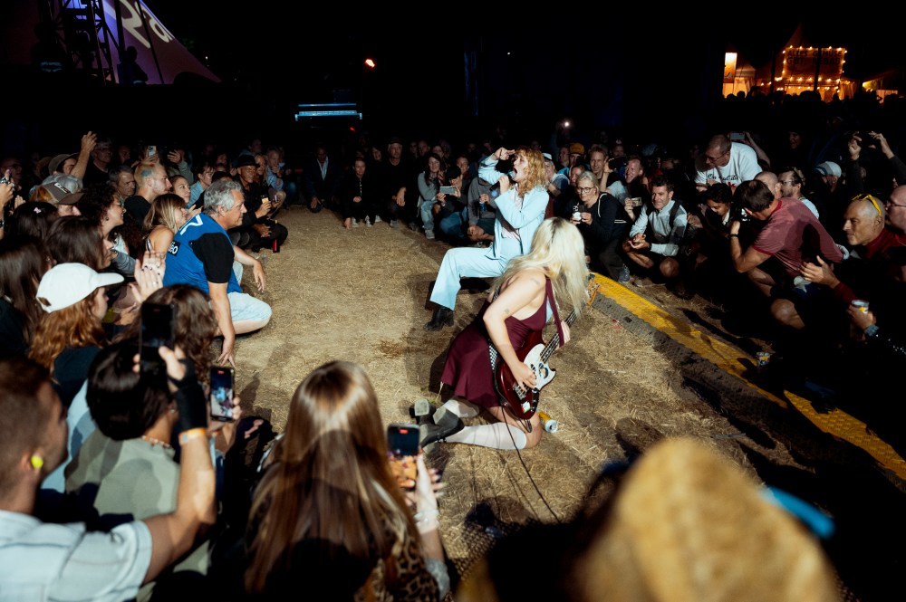 Et pour finir, direction le Club Tent. Sur scène, Les Lambrini Girls, majeurs dressés, hurlent leur rage. Une réincarnation punk au féminin, version 2025 des Sex Pistols, avec la même fureur mais une lucidité nouvelle. On comprend leur besoin de reprendre le contrôle : de leurs corps, de leurs voix, de leur présence – c’est une évidence. Pas de tolérance pour les commentaires débiles sur leurs vêtements ou leur manière de tenir la scène. Mais un certain panache pour allumer la mèche aux premières rangées.